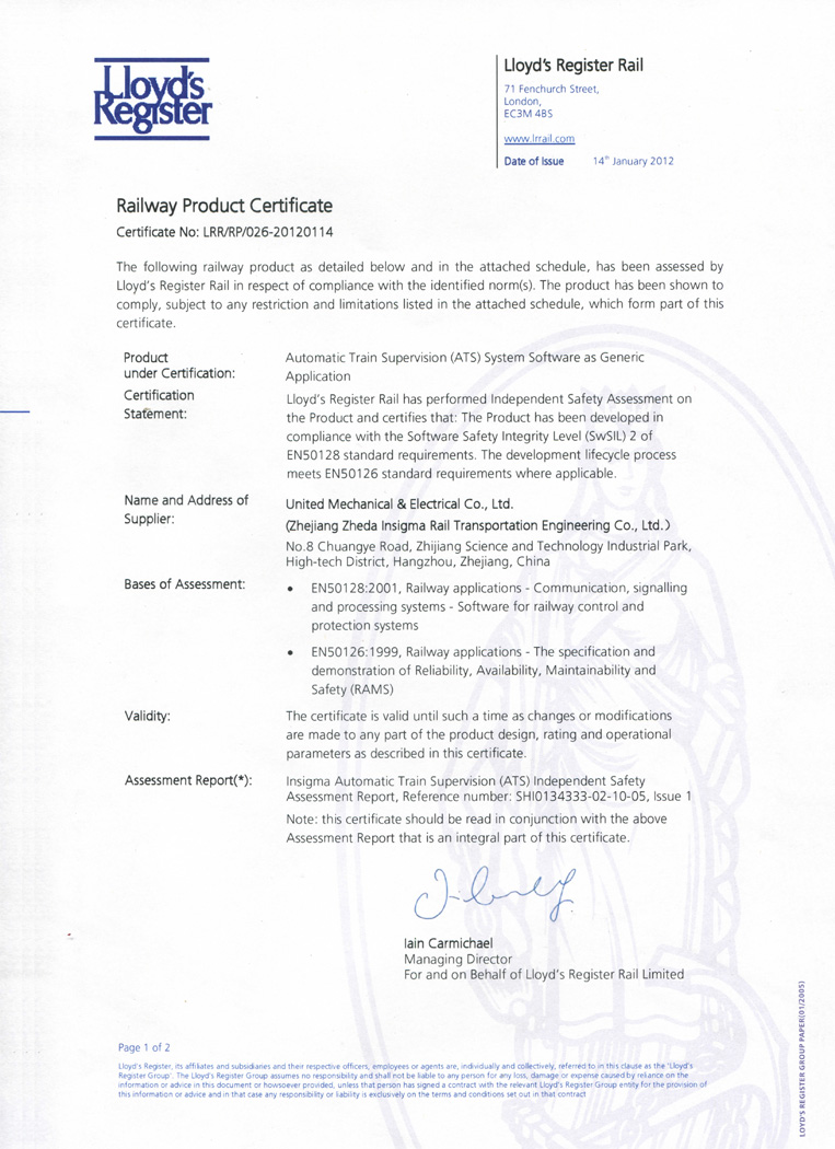 英國勞氏鐵路CBTC系統(tǒng)認證